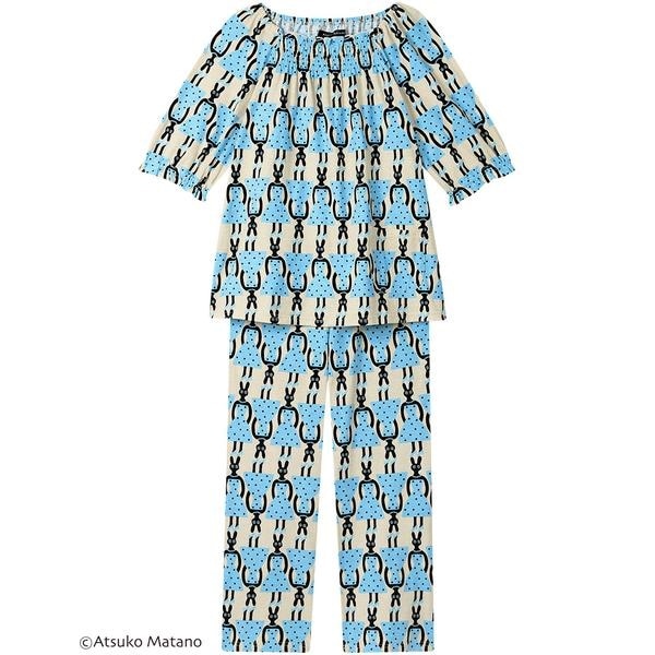 ・少しフシ(糸節)の見える生地感が特徴でやさしい肌ざわりの綿100%の天竺素材を使用・ドレスを着て、おめかしをしているうさぎがかわいらしいテキスタイル・袖口ゴム入替設計※お洗濯は、必ず「取扱い表示」にしたがってください。