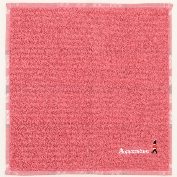 無地調のパイルに、アクアスキュータムの創業の地であるイギリスをイメージした衛兵の刺繍がポイントです。背面はチェック柄が楽しめるデザインが特徴です。