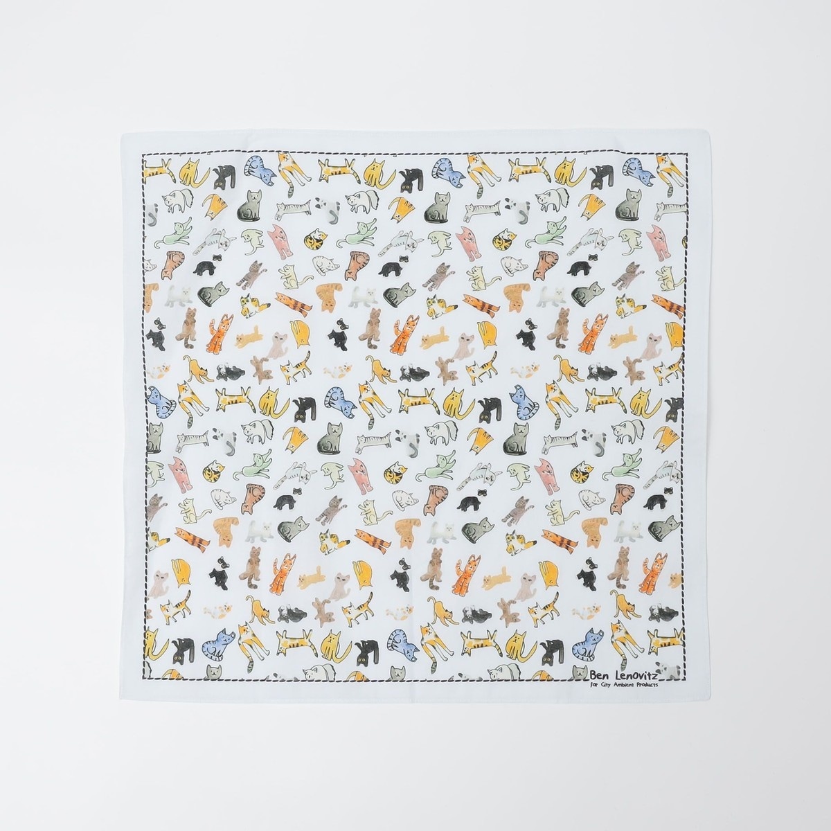 【デザイン】 New York在住のアーティストであり、「Art on Block」の創業者であるBen Lenovitzの描いた犬や猫の作品をプリントしたバンダナを別注しました。 様々なタッチで描かれた犬や猫がたくさん並んでおり、非常に可愛らしいデザインとなっております。