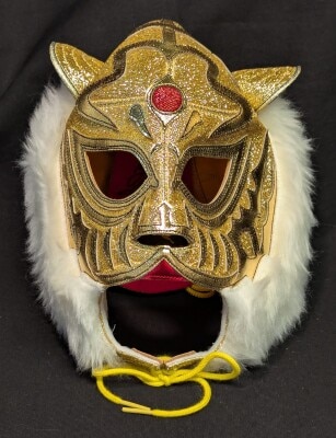 プロレスマスク※ミニサイズ YN製【初代タイガーマスク(金ラメ×えんじメタフチ)】ロゴ・タグ付き サイン入り