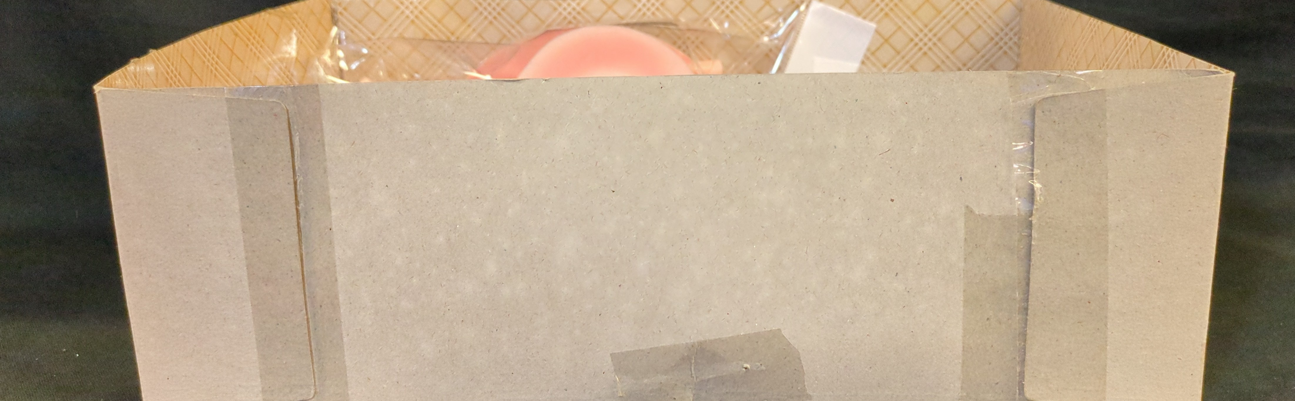 メーカーによる検品のため開封され再びテープ留めされたもの。中は未使用