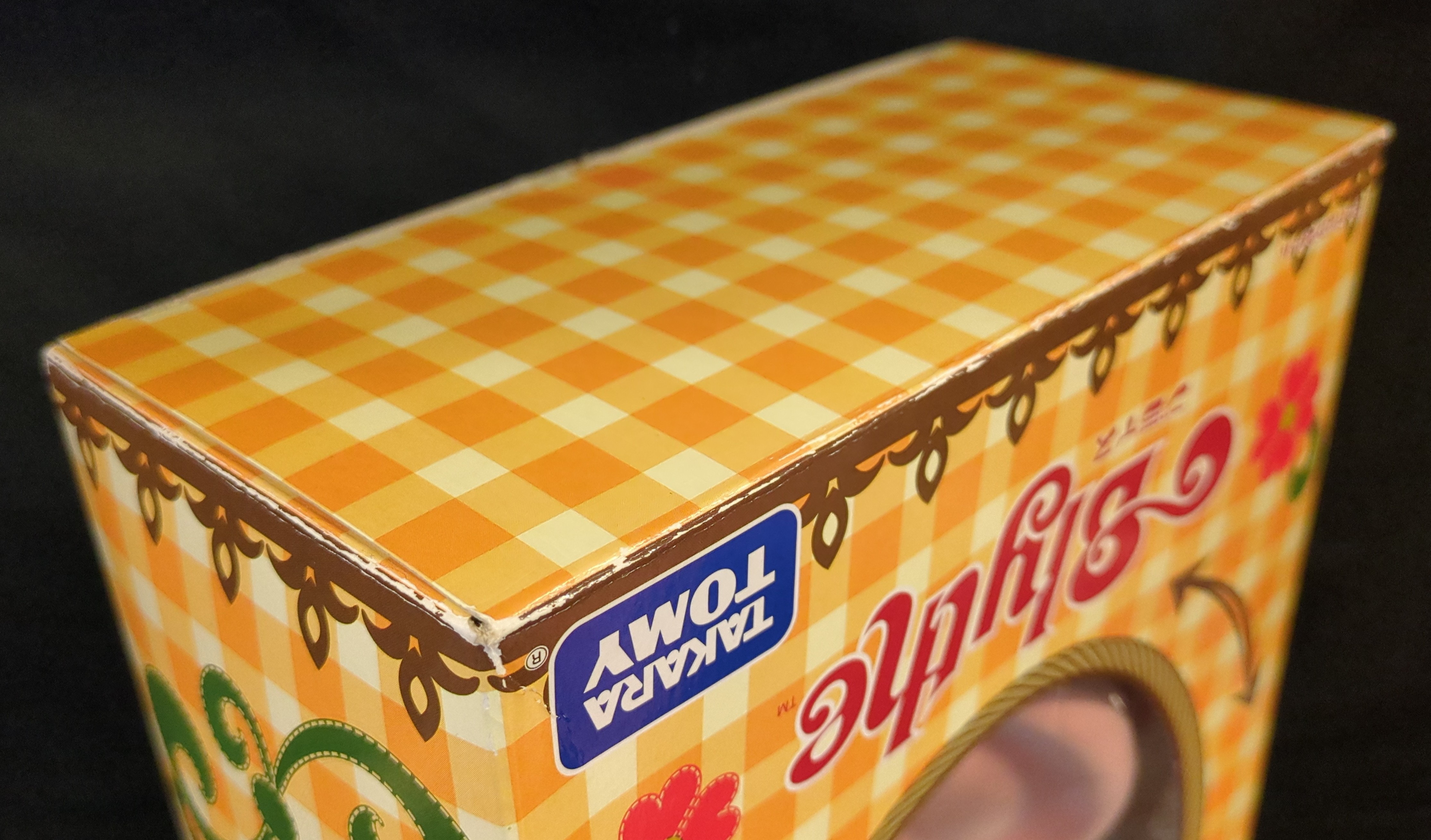 商品状態: (8)開封/おでこにスレ・ボディ色移り/箱内側と台紙にシミ・箱角にスレ