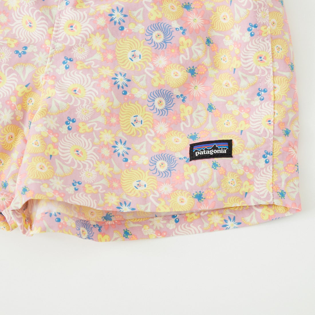 速乾性を備え海辺でもどこでも活躍するベビー バギーズショーツはおむつの着用に対応し、着せ替えしやすいソフトな伸縮性ウエストバンド付き。リサイクルされた漁網を使用し海洋プラスチック汚染の削減に貢献する、ネットプラス・ポストコンシューマーリサイクル・ナイロン100%素材の軽量なファイユ。軽度の水分を弾くPFCフリーDWR加工(過フッ素化合物不使用の耐久性撥水コーティング)済みです。