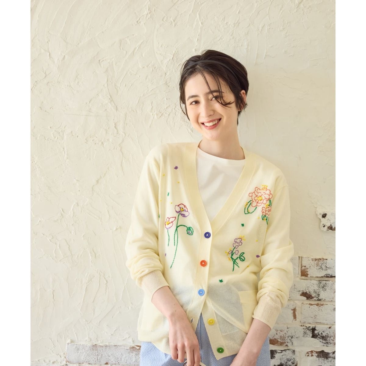 繊細なフローラル刺繍とカラフルなビーズがあしらわれた、Vネックカーディガン。