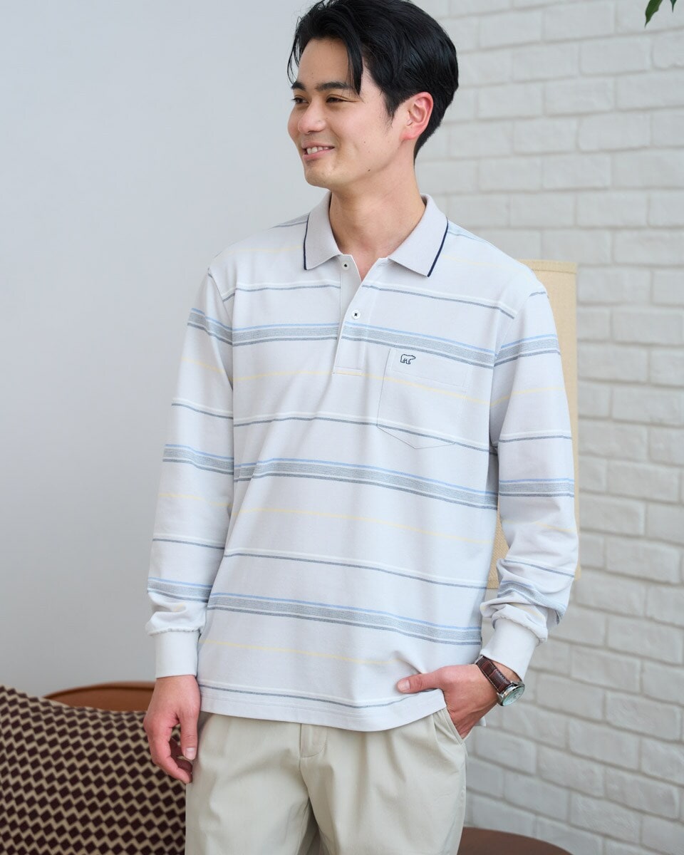 ボーダー長袖ポロシャツ