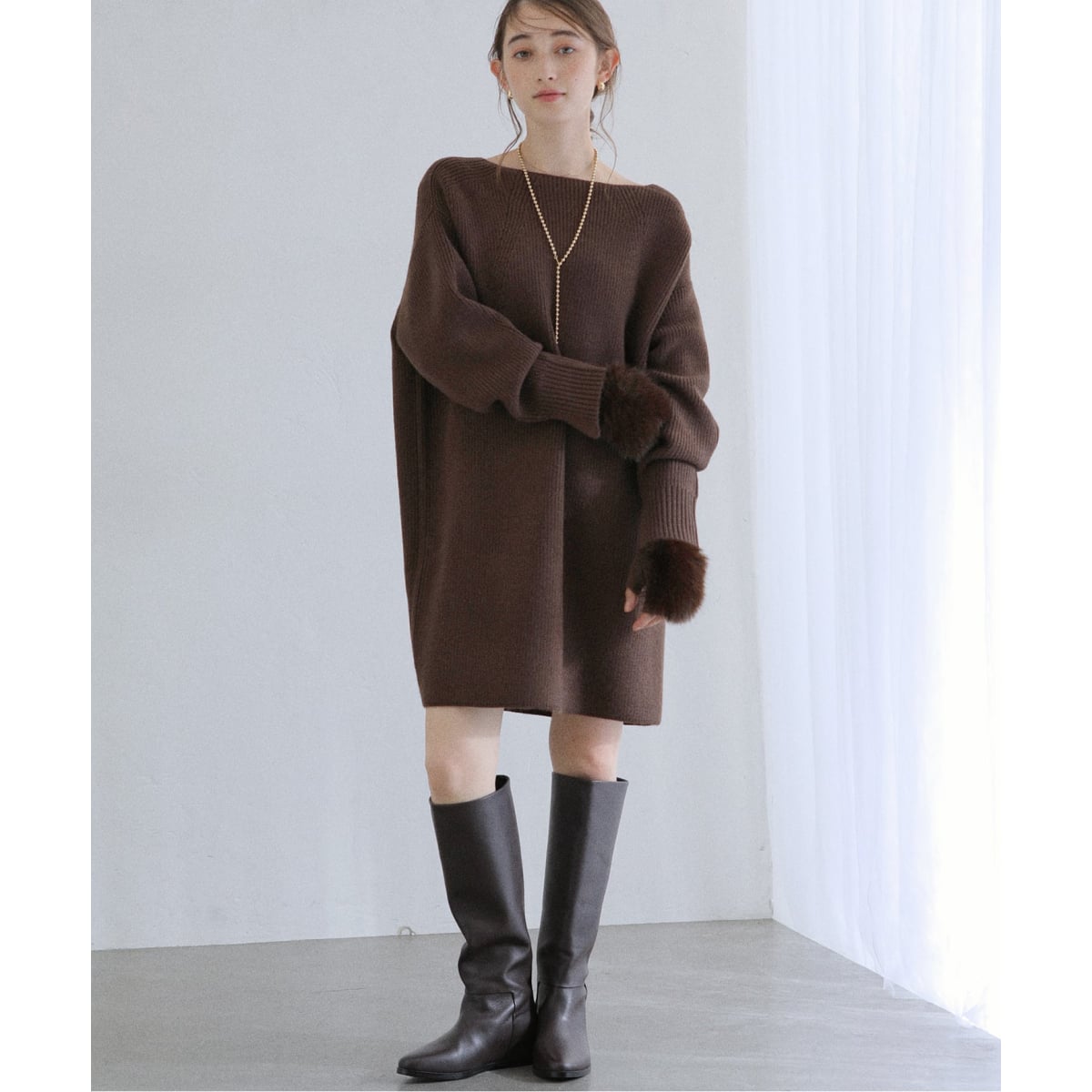 トレンドのファーグローブがセットになったニットチュニック。