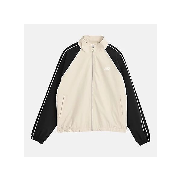 袖山線に沿ったパイピングが特徴のジャケット。裏起毛トリコット素材を使用し、寒い季節でも温かく快適な着心地を提供。裾口のゴムシャーリングが保温性を高め、リラックスシルエットがやわらかなラインを演出。胸元にはNBロゴ刺繍、スライダーのNBロゴ、左袖のリニアロゴ刺繍、ジップ付き左右ハンドポケットを備え、ジムトレからデイリーまで活躍。セットアップ:AWP53171