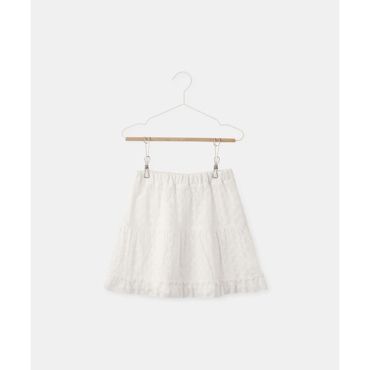 ・刺しゅうレースの素材が春らしいギャザースカート。