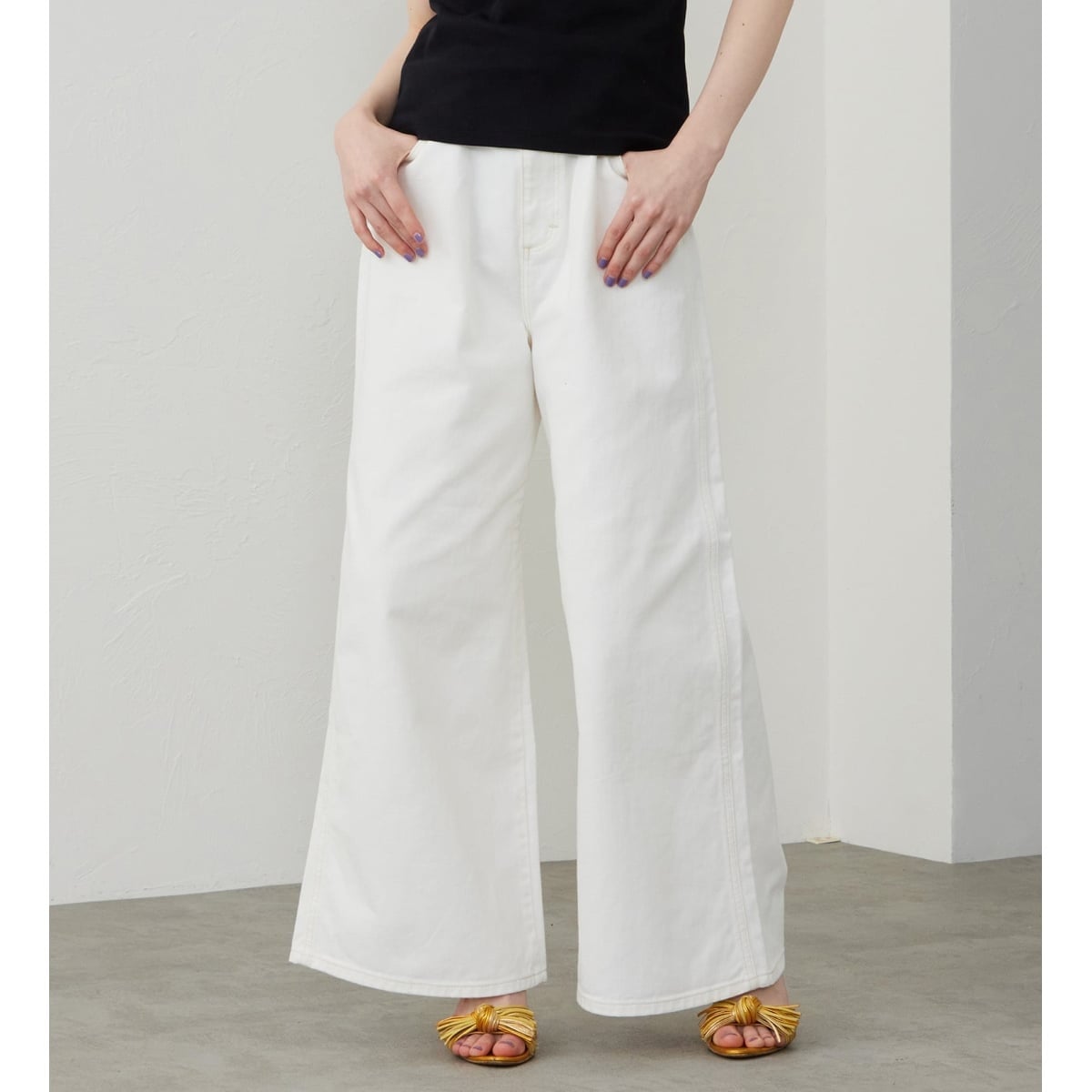 ホワイトを選べば、春夏の重くなりがちなワイドパンツコーデも一気にクリーンで軽やかな印象になりますよ。
