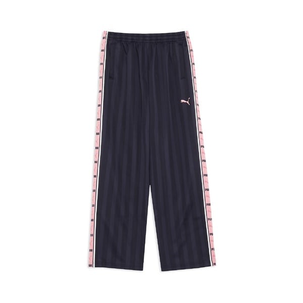 両サイドにはPUMAワードロゴとキャットロゴをリピートしたオリジナルのテープを採用しています。テープと同色のキャットロゴが特徴的なデザイン。かなりゆったりしたリラックスシルエット、サイドポケット付きで小物の持ち運びにも便利です。あの頃を彷彿とさせるレトロ感を感じさせる一着で、2024年版のシャドウキャットストライプをぜひお楽しみください。同コレクションのジャケット【品番: 527754】と合わせてセットアップコーデも可能。