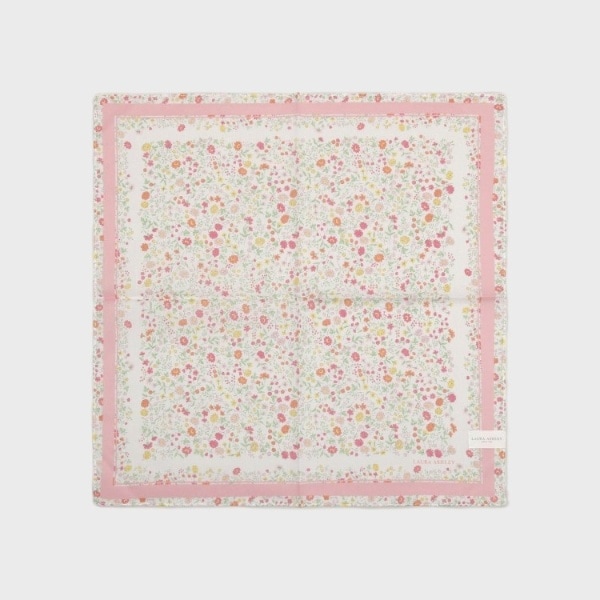 ローラ アシュレイ 70周年を記念して作られた「ベラ」柄をガーゼ生地にプリントしたハンカチです。
