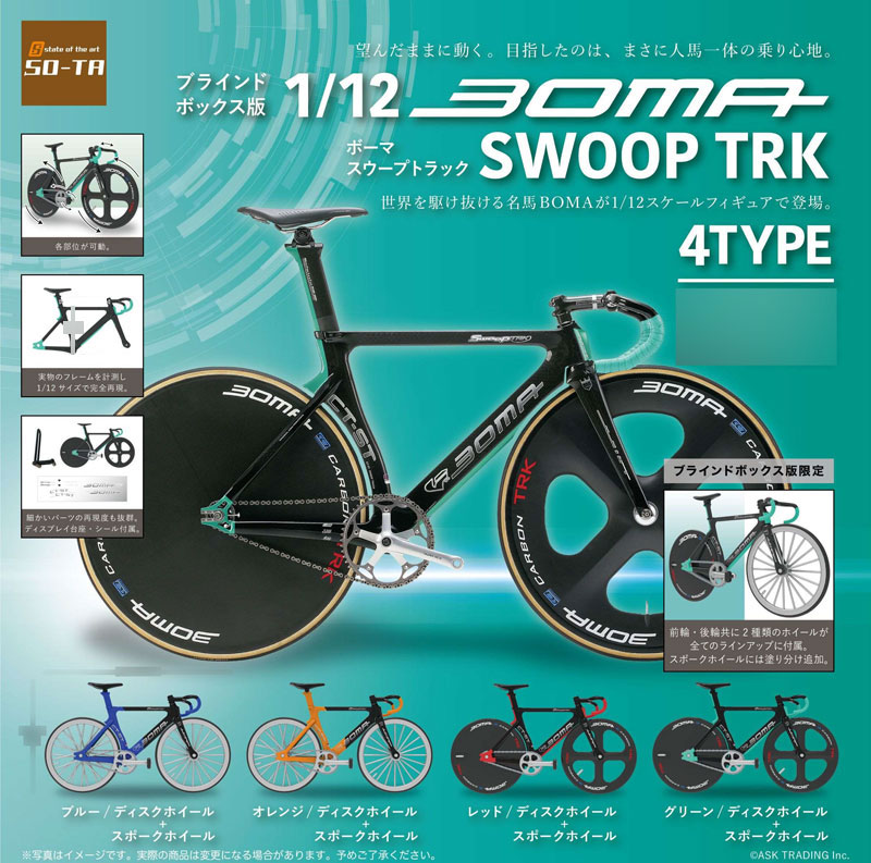 ●カーボンバイクブランド「BOMA」が手掛ける、トラック競技の選手達からのフィードバックに基づき設計された「SWOOP TRK」が1/12スケールになって登場!