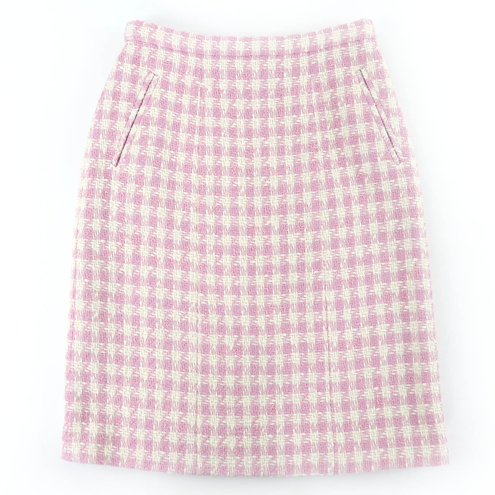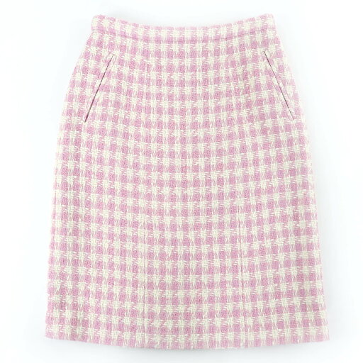 極美品▲CHANEL シャネル P47766 ココマークパーツ 膝丈 ツイードスカート タイトスカート ベージュ 36 フランス製 正規品 レディース【中古】