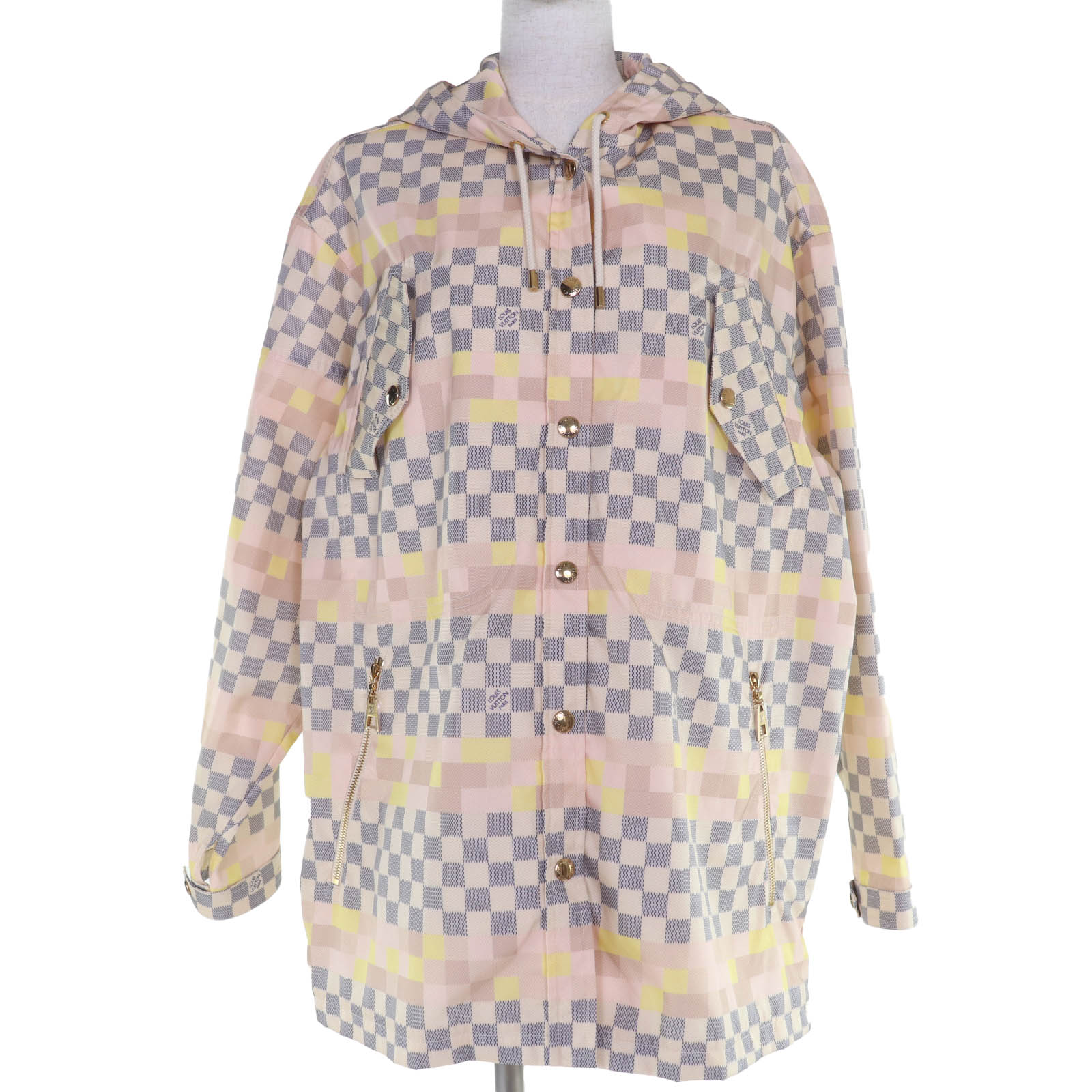 極美品□LOUIS VUITTON ルイヴィトン 2023年製 ダミエ モノグラム ニットポロシャツ セーター アイボリー XXL イタリア製 正規品 メンズ【中古】