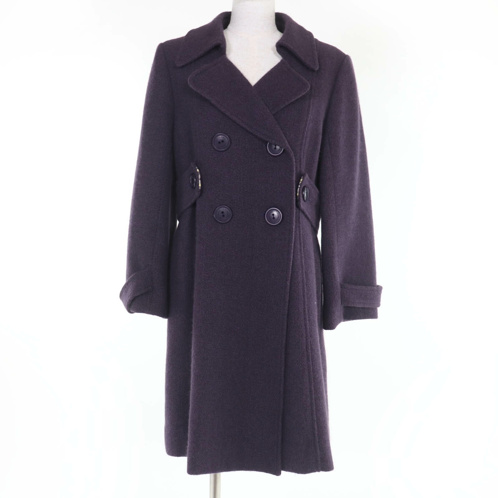 極美品☆LEONARD FASHION レオナール ファッション ウール100% フォックスファー付 FOX コート ブラック 40 日本製 正規品 レディース【中古】