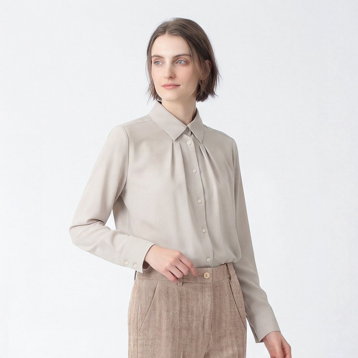 【IEDIT】IEDIT スマートに決まる比翼仕立てのスタンドカラーブラウス