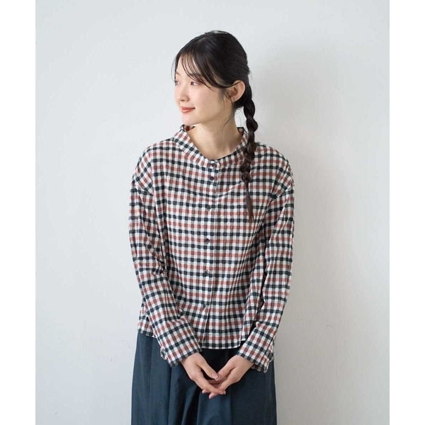 塩縮ギンガムプリントブラウス
