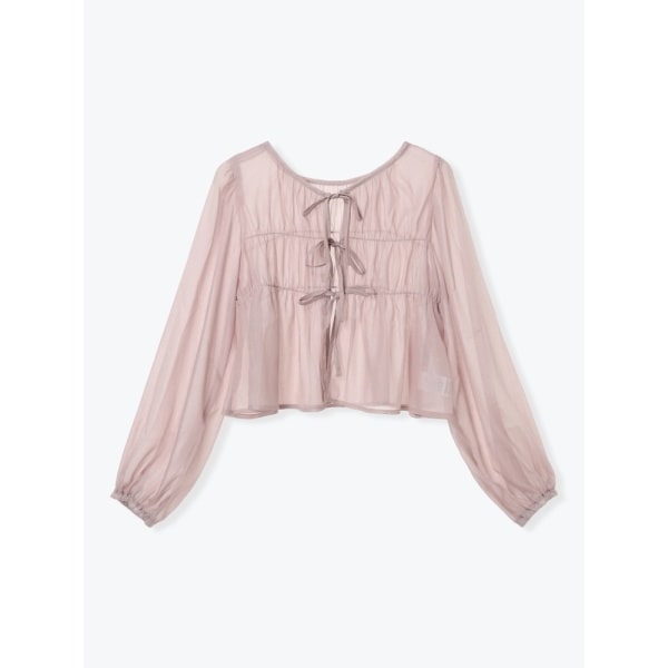 00’s ボーホー古着 オリエンタル 花柄 フロントリボン シアーカーディガン