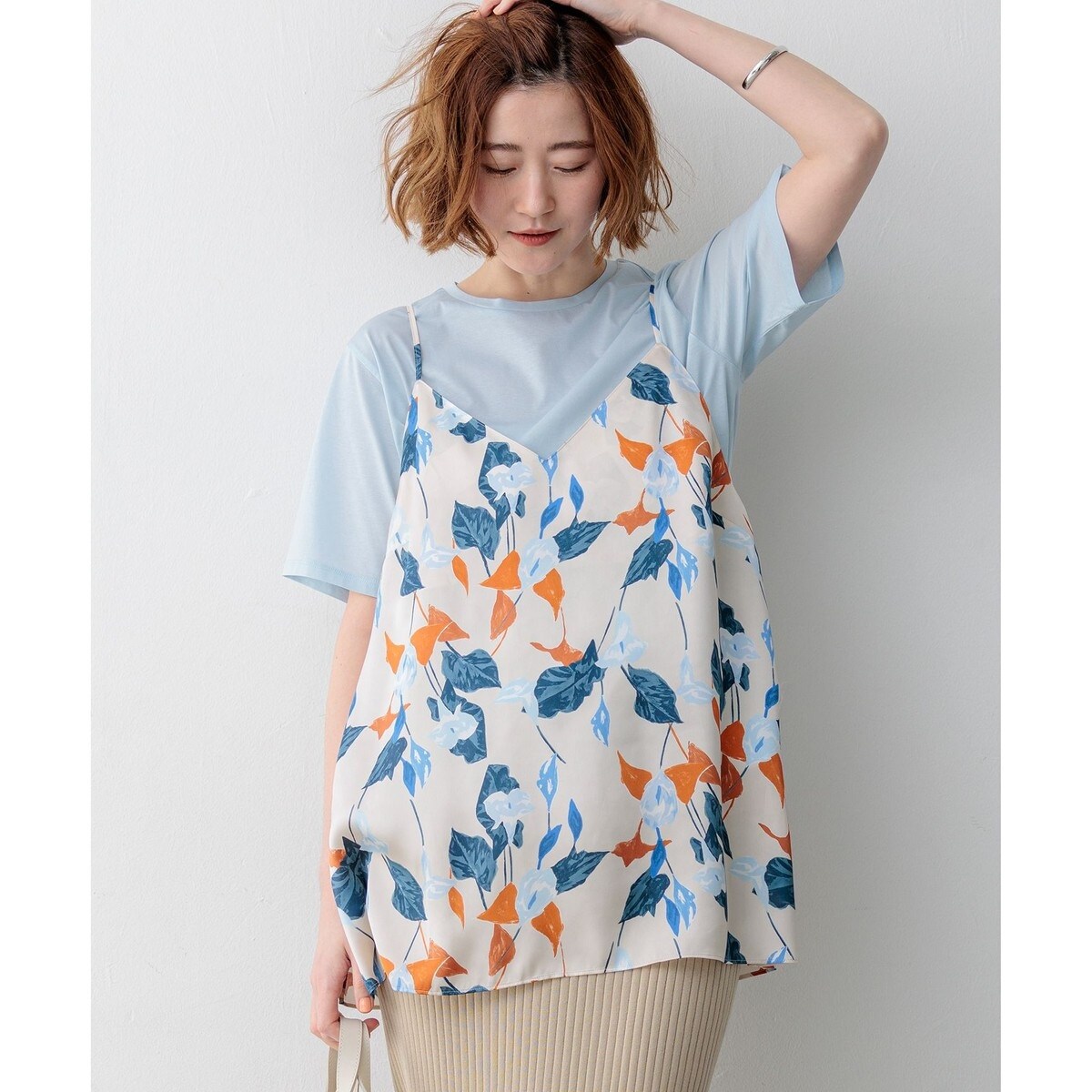 ヴィンテージライクな花柄で魅せる、大人のレイヤードスタイル