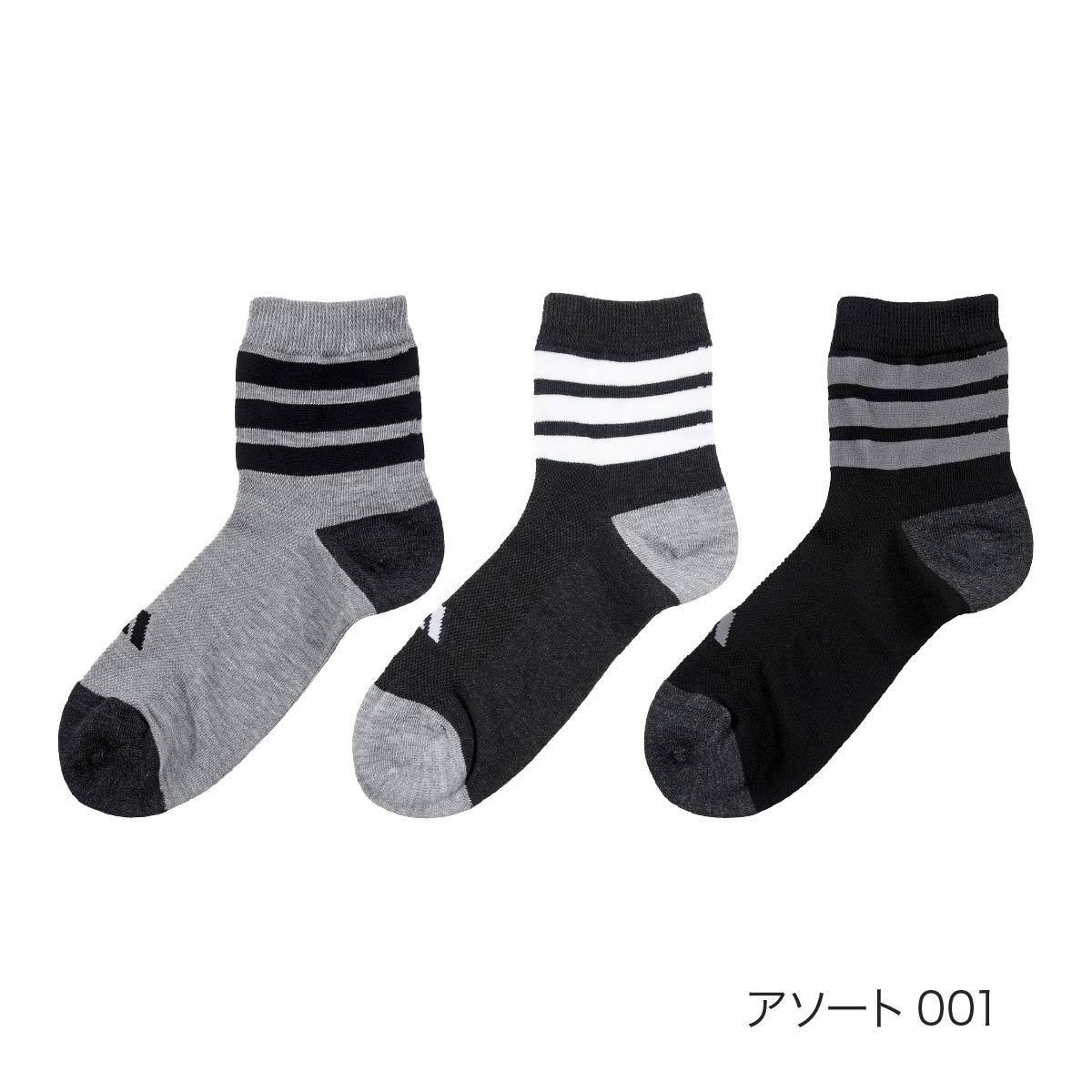 大人気のスポーツブランドadidas(アディダス)のショート丈ソックス3足組です。足首に3本ラインと、甲部分にロゴワンポイントをあしらいました。かかとが大きめで足がしっかり包まれているような感覚に。安心のつま先かかと補強が施されています。甲部分がメッシュ素材になっているので蒸れにくく快適。消臭機能も備えました。スポーツやカジュアル、様々なシーンで活躍してくれる1足です。色違いの3足セットで洗い替えにも便利でその日の気分やファッション合わせてお選びいただけます。