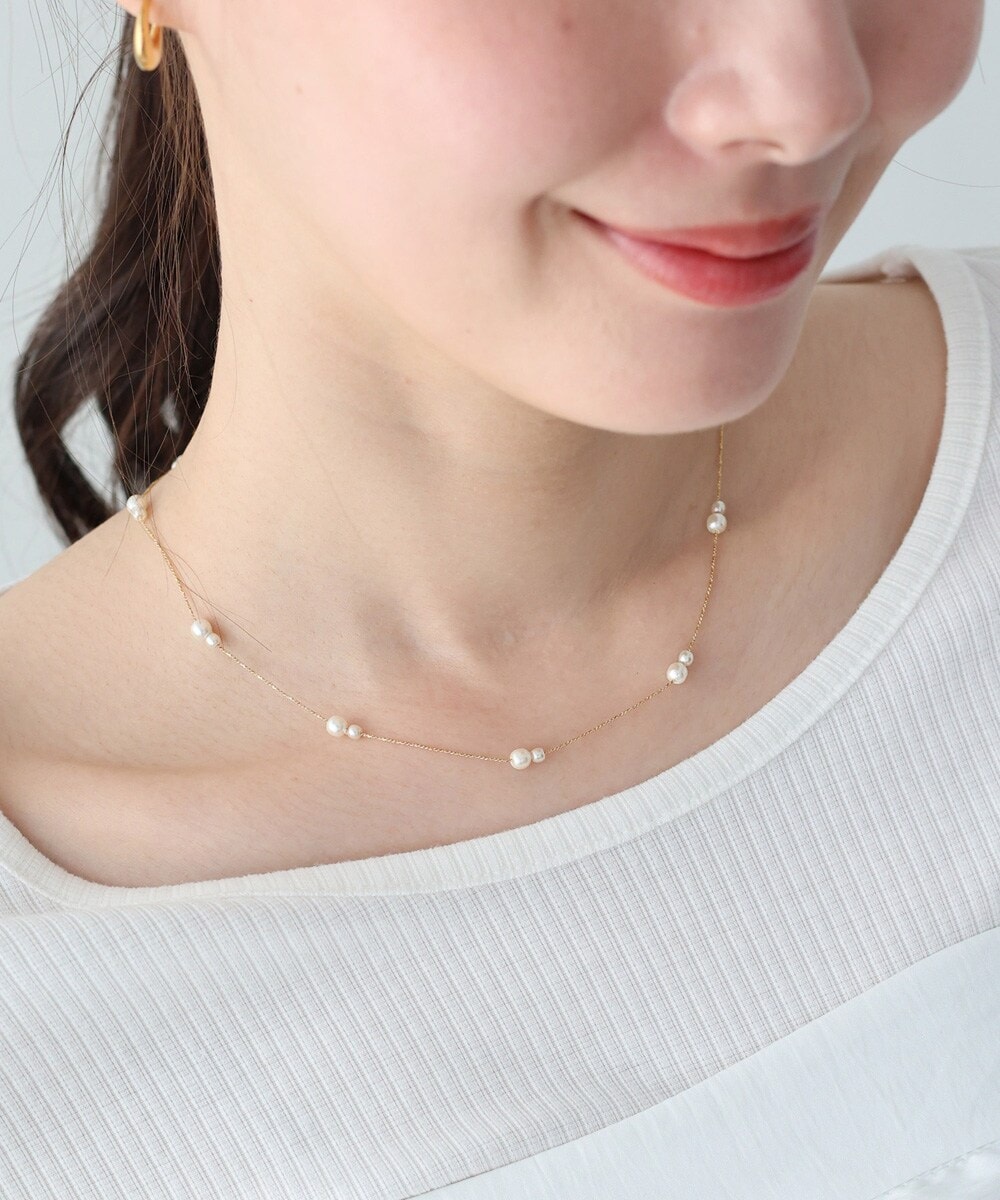 柔らかな光沢の大小パールが上品で女性らしい雰囲気で、毎日着けても飽きない上品なデザイン。