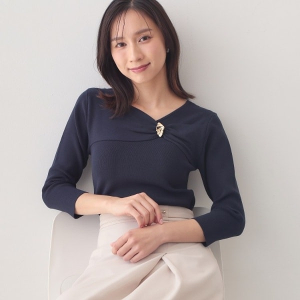 ・ややVネックの衿元がデコルテを美しく見せ、女性らしさを引き立てます。