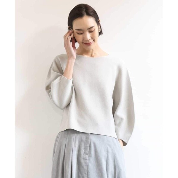 繊細なラメが上品にきらめく張りのある編地を使用し、ホールガーメント仕立てで縫い目がないため、立体的なパフスリーブが美しく際立つ一枚です。40サイズは限定店舗展開です。
