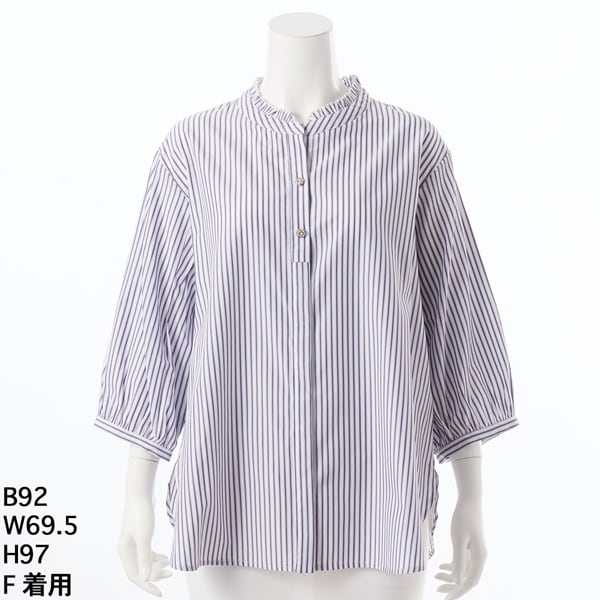 送料込み ramroll ラムロール オンワード クリーム ベージュ ストライプ 柄 パール ビジュー ブラウス 17号 ( 日本製 大きいサイズ 洗える