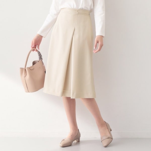 ・フロントのアシンメトリーなタックデザインがアクセントになり、ラップスカートのような雰囲気を演出。