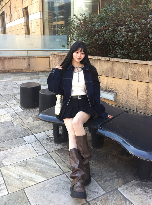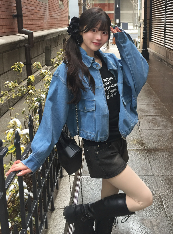 ショート丈なので重たくなりすぎず、幅広いボトムスやワンピースにも相性◎。