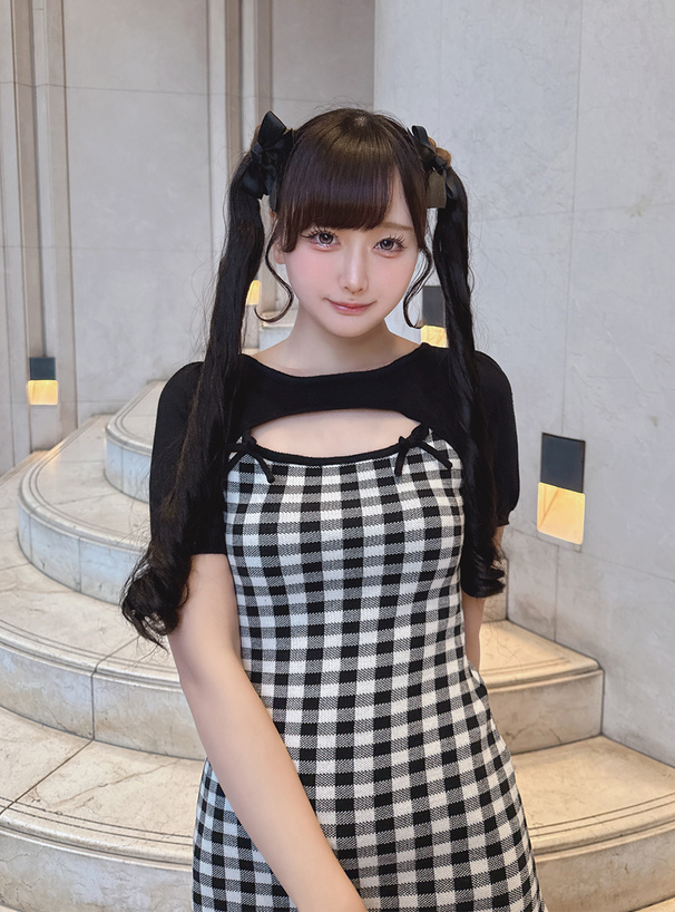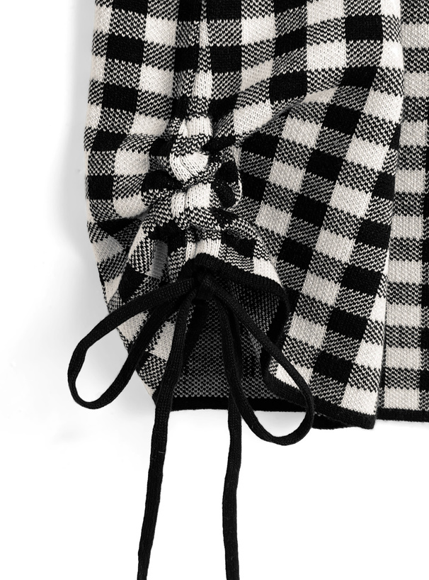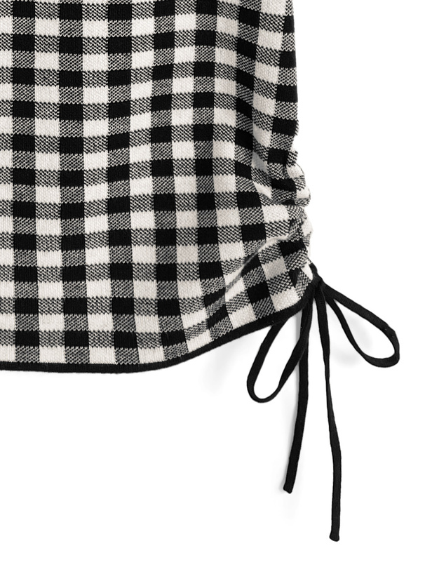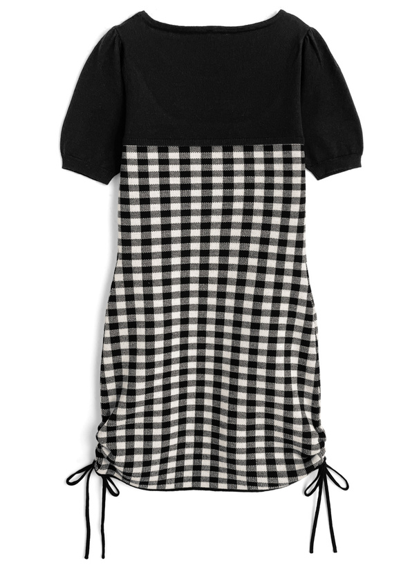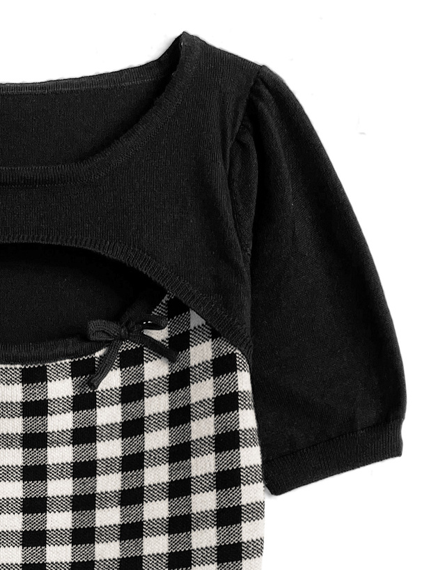 ギンガムチェック柄リボンフレアニットワンピース[lt162]