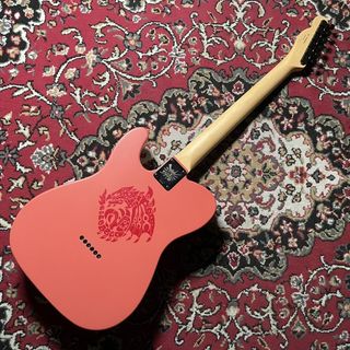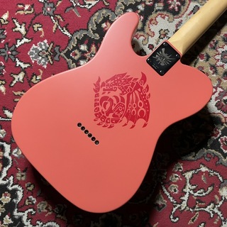 「モンスターハンター」シリーズの象徴的存在である、空の王者「火竜リオレウス」をモチーフとしており、ボディの背面と12フレットのインレイに施されているリオレウスのアイコンをはじめ、ボディ表面には特徴的な羽の模様と炎を表現した紋章、ギルドマークなど、ゲームの世界観を各所で感じることができます。リオレウスを表現したオリジナルのカラーリングやピックガードの素材、全てブラックで統一したハードウェアなどにも拘った、唯一無二のギターです。
