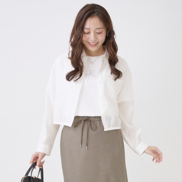 JaVa 2way クロップド丈シアーバンドカラーシャツ