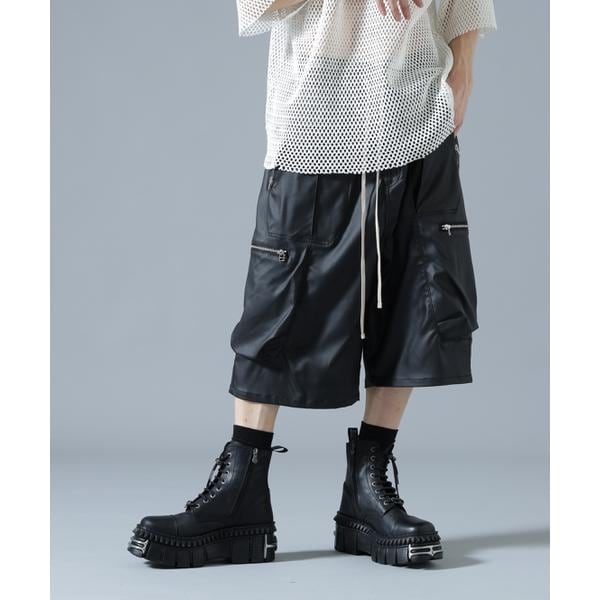 重厚感のあるコーティング素材を使用した存在感抜群のBAGGY CARGO SHORTS。