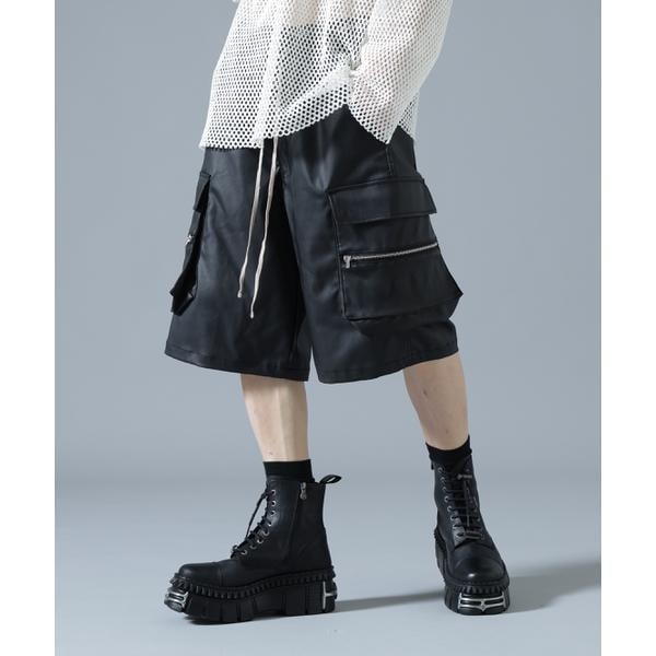光沢感のあるコーティング素材が存在感を放つモードストリートなCARGO SHORTS。