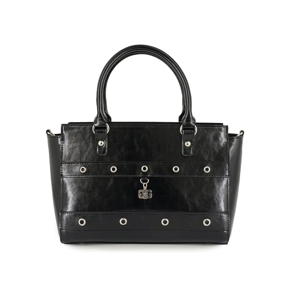 p o i n t . シンプルなデザインの中に、GYDAのロゴメタルが目を引くデザイン。かっちりとしたデザインのハンドバッグを普段使いサイズに。大き過ぎず、小さ過ぎずちょうどいいサイズ感に仕上げました。 内側にはあおりポケットやファスナーポケットなど、充実の収納性を持たせています。ごちゃっとしがちなバッグの中をすっきりさせることが可能。 さらには、付属のショルダーストラップを付ける事でショルダーバッグとしてもお使いいただける優れもの。ハンドバッグ / ショルダーバッグの2WAYでお使いいただけます。 #ダブルベルト#2WAY#かっちりデザイン ----------------------------------------------------------------------