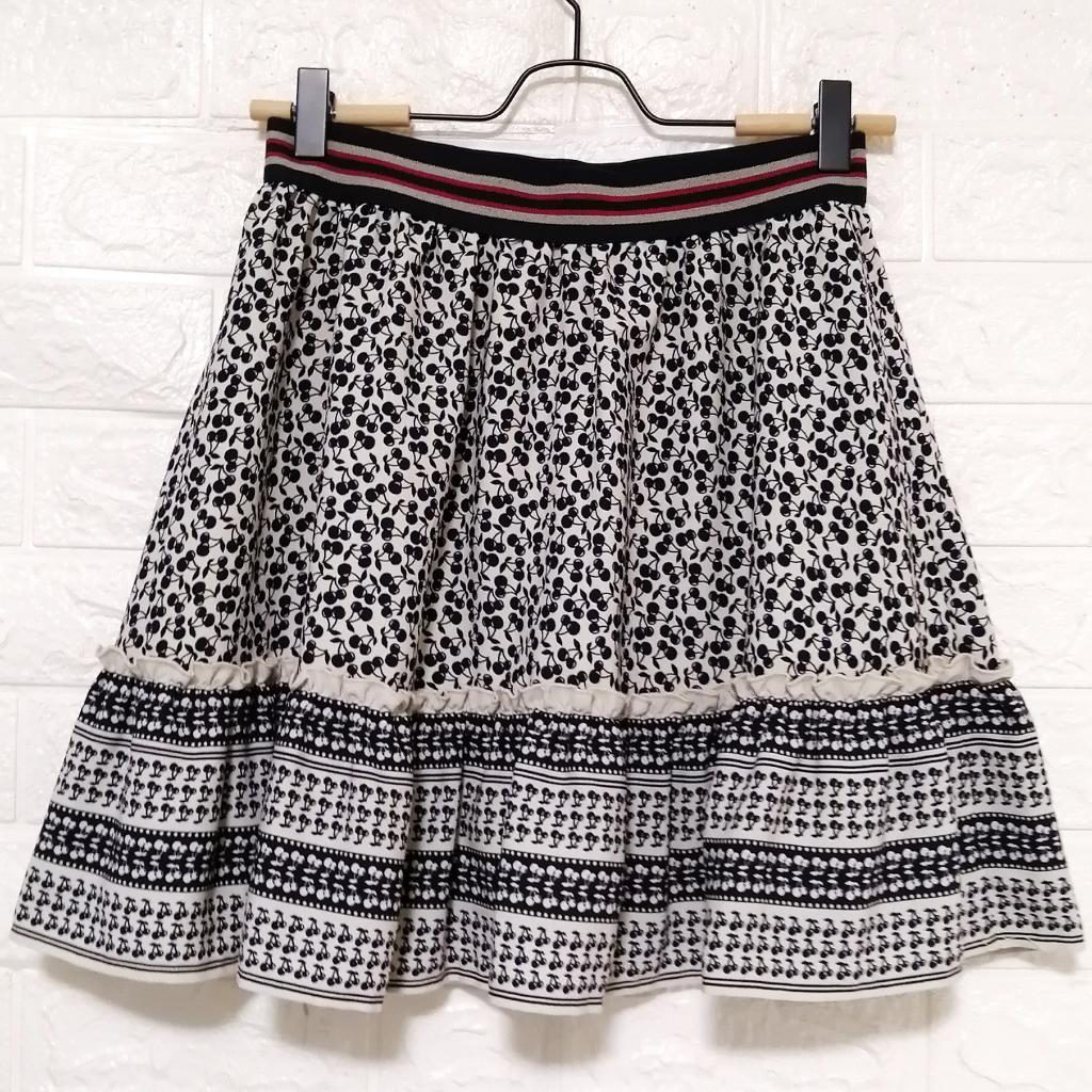axesfemme アクシーズファム レディース・ガールズ 総柄 チェック ロングスカート ウエストゴム Mサイズ 裾刺繍