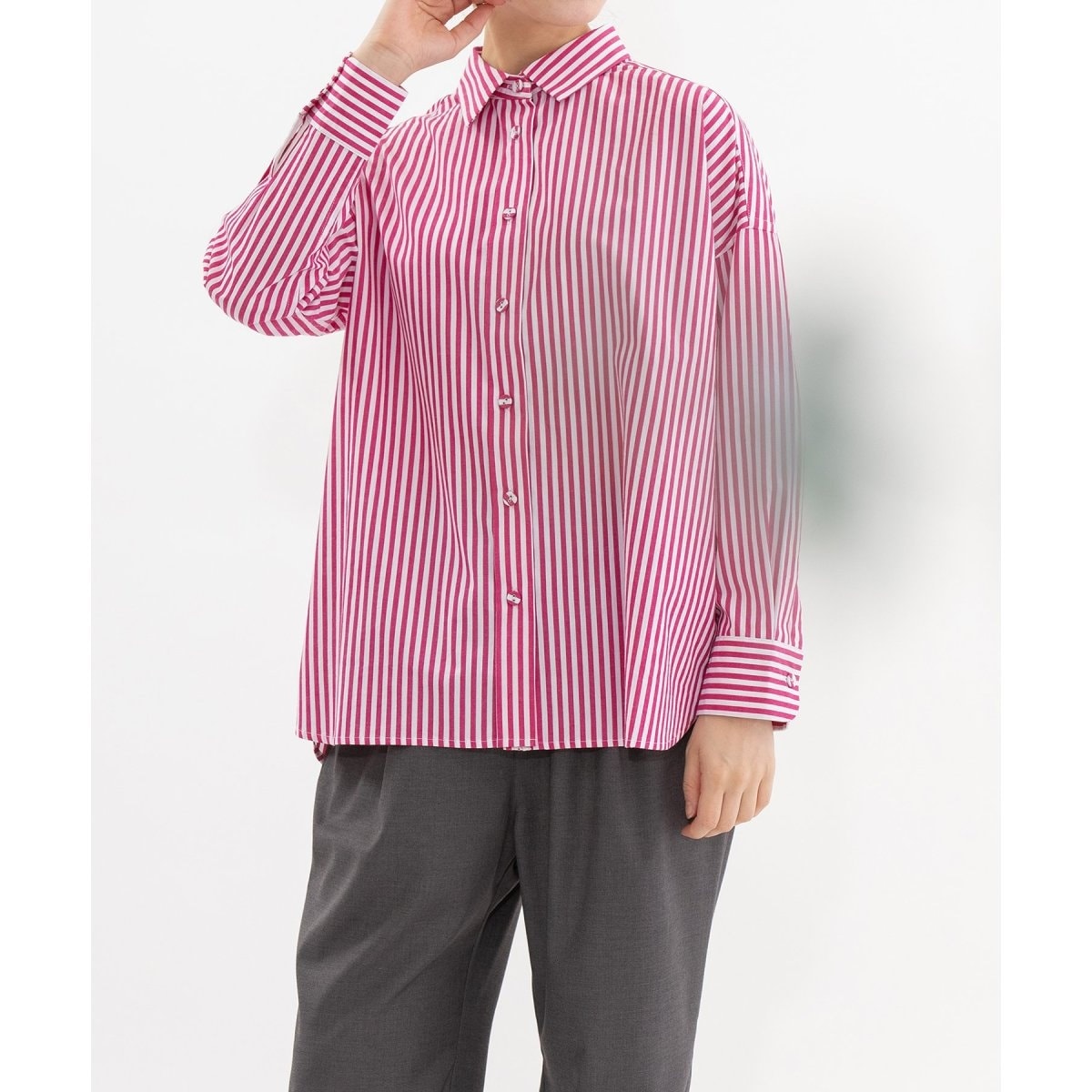 綿・コットン素材  /  綿100%  /  ストライプ  /  長袖  /  洗える  /  レギュラーカラー  /  レギュラー丈(トップス)