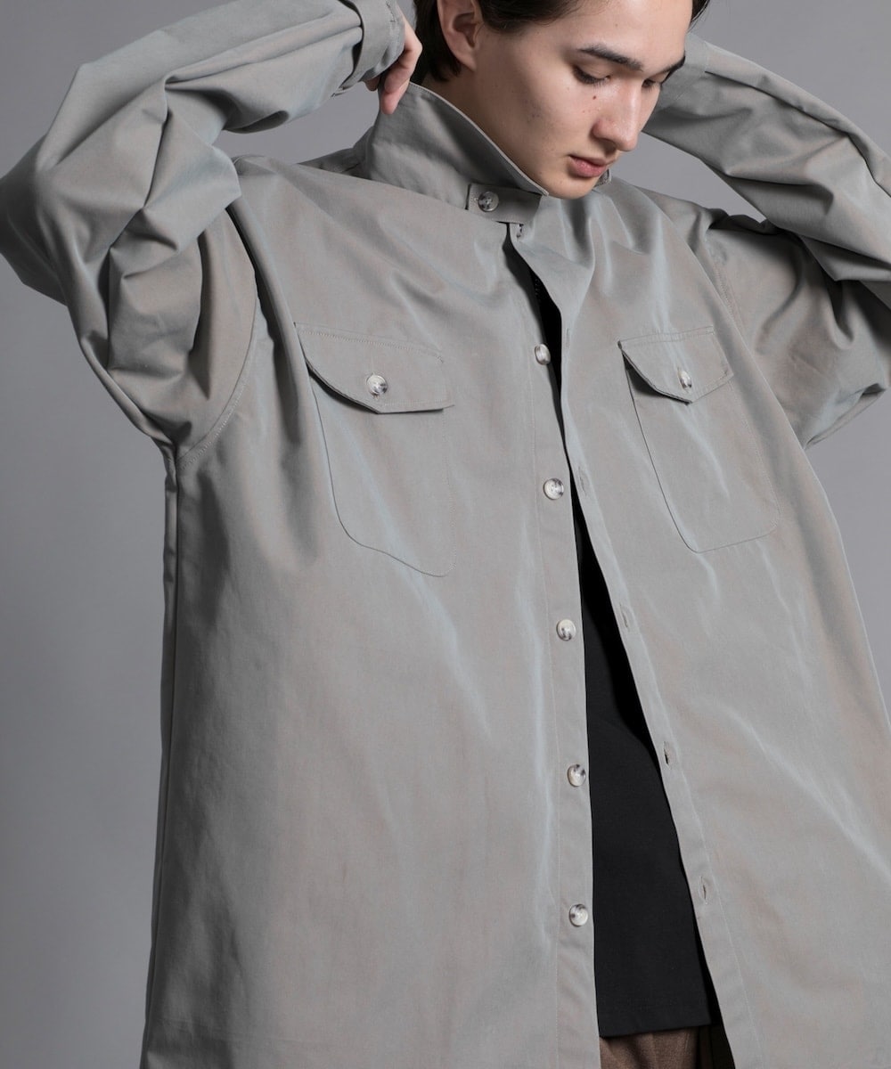 ■ITEM* 軽やかでありながら暖かみも感じられる生地は、重ね着をしてもごわつかない適度な厚さが魅力です。カラーバリエーションは、ベーシックなベージュ+ブラウン、グレー+ブラックが揃い、どの色もコーディネートに取り入れやすく、シーズンを問わず活躍するマストなアイテムです。■MATERIAL* コットン65%とポリエステル35%のブレンドで、特に偏光加工が施されており、光の当たり方によって様々な陰影が生まれるのが特徴です。イージーケアの機能を持つポリエステルにテンセルの柔らかな肌触りとドレープ性を組み合わせており、シワになりにくいという利点があります。ブルーの色味にはシャンブレー織りを採用しており、縦糸と横糸の異なる色の組み合わせによって、ソリッドな素材にはない深みと陰影を与えています。全体的に洗練されたデザインと機能的な素材使いで、現代のライフスタイルにマッチするアイテムとなっています。■DESIGN*シャツ/アウター、機能的な2WAY仕様が特徴的な新感覚シャツ、シンプルながらもディテールにこだわり抜かれたボックスシルエットが採用されており、後ろ裾には特徴的なラウンドカットヘムが施されています。ステッチの幅は各パーツに応じて精密に計算されており、完成度の高い定番のロングスリーブシャツに仕上がっています。■ブランドについて新たな事物とは、自分の可能性と自分らしさを常に追求し、新たなライフスタイルを提案する。公式instagram>>@néo_aimoha新商品の紹介や、再入荷の情報などは更新中!■ 推奨サイズM…~171cmL…172cm~175cmXL…176cm~※好みや体型によって個人差があります※洗い加工を行なっておりますので、色落ち具合・ダメージ具合に個体差がある場合がございます。ご了承くださいませ。