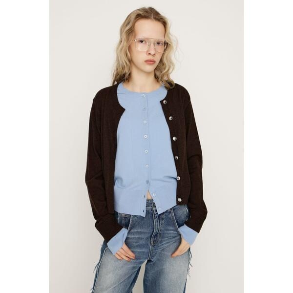 【LAYERED LIKE KNIT TOPS】■POINTまるでカーディガンを2枚レイヤードしているような、立体感のあるデザインが魅力の一着。内側と外側で異なる素材を使用することで、奥行きのある表情に仕上げました。■DETAILボタンもそれぞれ変えており、細かなディテールまでこだわりが光るアイテムです。羽織るだけでスタイリングにこなれ感がプラスされ、シンプルなコーディネートもランクアップ。■STYLINGデニム合わせでカジュアルに合わせたり、スカートやワンピースに羽織って女性らしくもコーディネートできます。コーディネートの幅が広がる一枚です。■FABRIC/MATERIAL内側はソフトタッチな風合いの天竺ニット、外側はウールが入った天竺ニットを使用しています。■透け感:なし■光沢感:なし■伸縮性:なし■裏 地:なし※お取り扱い上のご注意・洗濯機表示の場合はネットに入れて弱水流で洗って下さい。・手洗いの場合はもみ洗いを避けて軽く押し洗いして下さい。・洗濯後は、速やかに形を整え干して下さい。・丈の長い製品、袖など伸びやすい箇所はハンガーで支えたり、平干しをすることで型崩れを防止できます。・本品は、着用(使用)や洗濯クリーニングにより、毛羽立ちや毛玉が発生することがあります。・連続着用はお避け下さい。・毛玉が出来てしまった場合は、毛玉取り器またはハサミで丁寧にカットして取り除いて下さい。[注意事項]※画像の商品はサンプルです。実際の商品と仕様、加工が若干異なる場合があります。※画像の商品は光の照射や角度、お使いのモニター環境により、実物と色味が異なる場合がございます。※着用、お取り扱いの際は、アテンションタグをご確認ください。※一部予約商品につきましては生産上の都合によりお届け予定日や店頭発売と前後する場合もございます。※追加生産商品は、一部の店舗、通販で販売中の場合がございます。予めご了承下さい。
