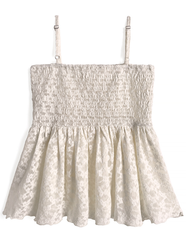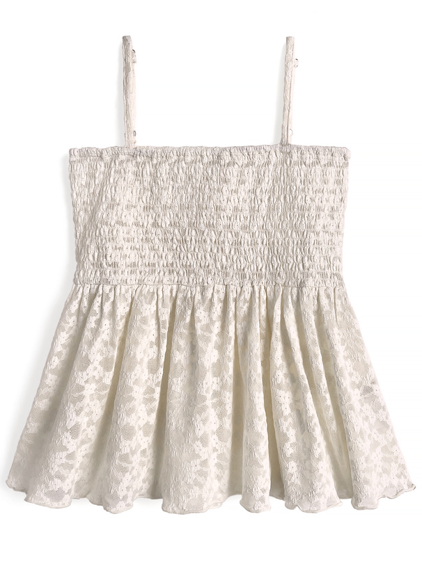 繊細なフラワーレースで仕立てたガーリーな印象のキャミソールビスチェ。