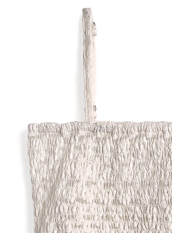 バストまわりは伸縮性抜群のシャーリング仕様でフィット感のある着心地。