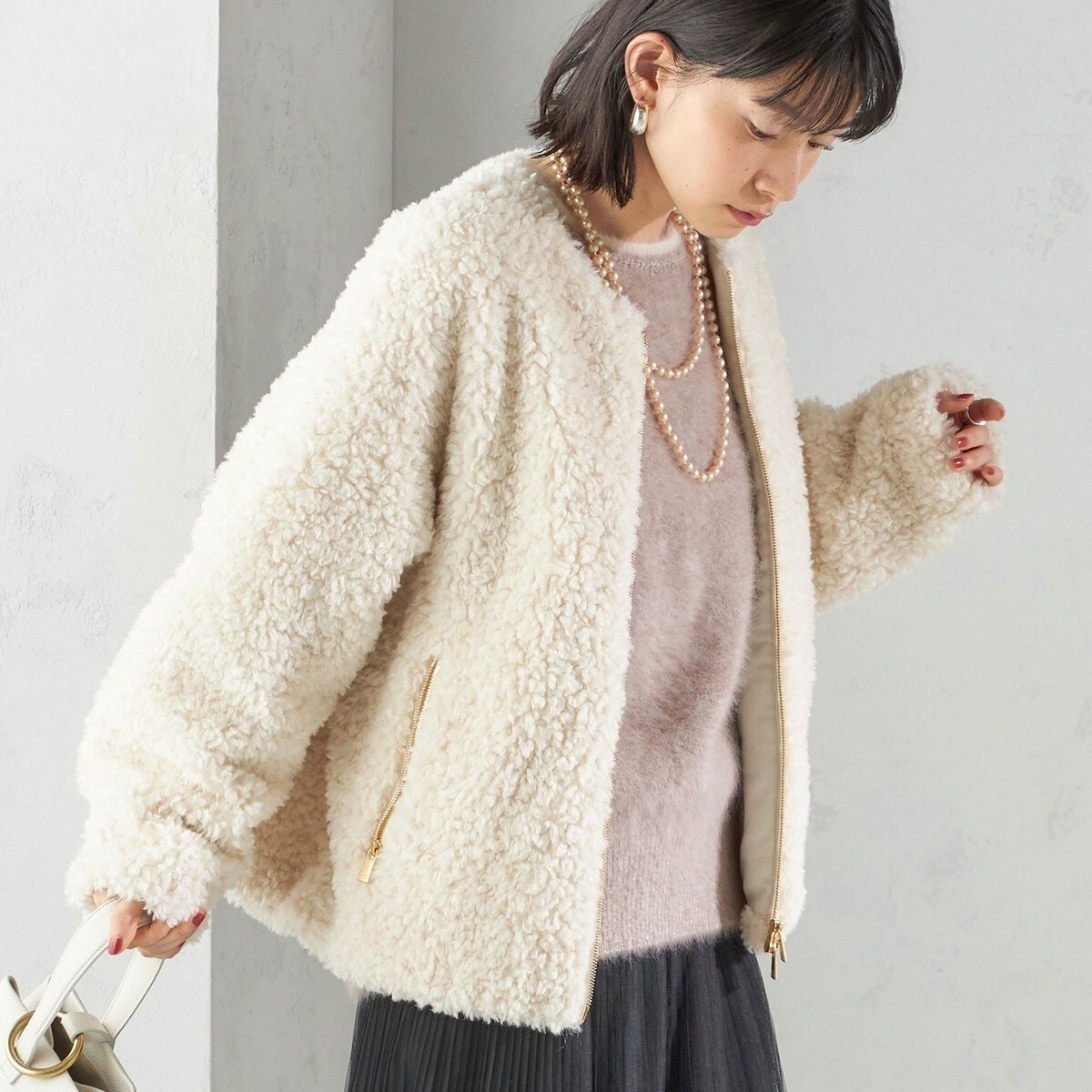 ノーカラーのショート丈デザインが特徴の「ILVA(イルヴァ)」をベースに、生地をTATRASインラインで人気のシープ調ボアに生地変更したスペシャルモデルです。