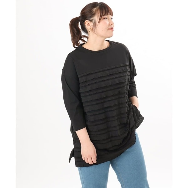 23区【汗じみ防止洗える】ランダムフリルジャージー ドッキング カットソー大きい