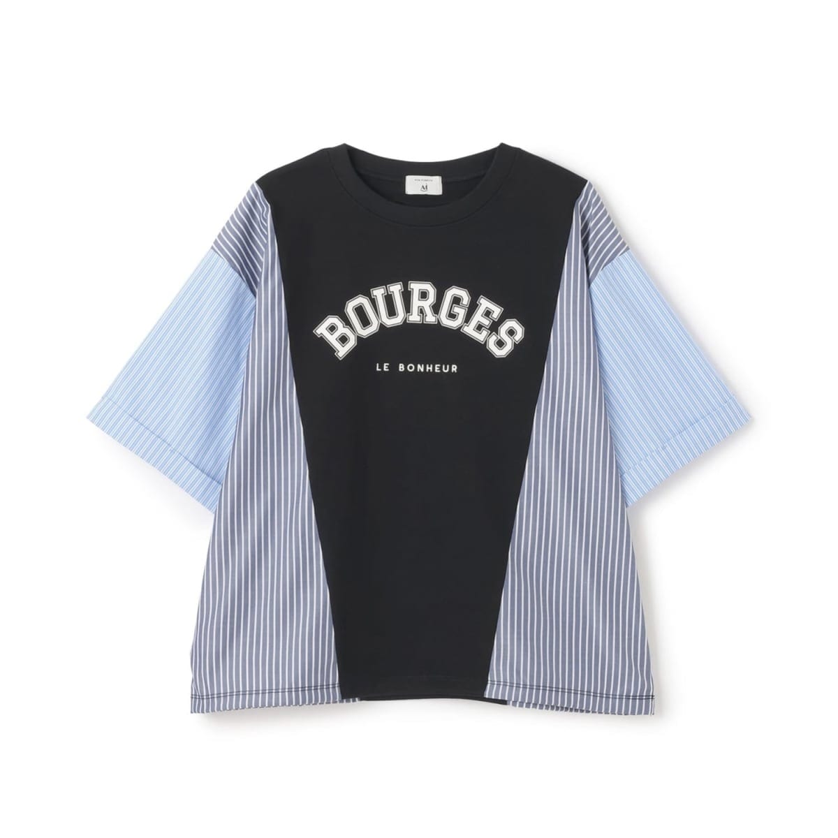 カジュアルなカレッジロゴに、異素材の切り替えで遊び心をプラスしたTシャツ。