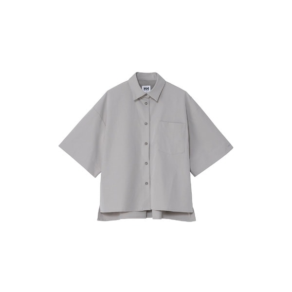 リラックス感がありつつ、クリーンな印象の着こなしが楽しめるシャツ。水陸両用で使え、旅先でのスタイルにも重宝します。吸汗速乾性を備えた生地で、ストレッチ性に優れているため、心地よく着られるのが特長。生地にシワ加工を施すことで、汗をかいても肌に張りつきにくいのも魅力です。乾きやすく自然なシワ感のある生地で、イージーケア性にも優れています。リラックスした着こなしがかなうゆったりとしたシルエットで、バランスよく着こなせるショート丈。背面には、ふらし仕様のベンチレーションを配置しています。強い日差しの中での長時間活動に対応できるUVプロテクト(UPF50+、紫外線カット率95以上)機能付き。背裏には、濡れたときに簡易的に掛けられる襟吊りを配置。ナチュラルな風合いのため、アウトドアアクティビティや水遊びにはもちろん、街でのスタイルにもなじむアイテム。同素材のパンツとのセットアップもおすすめです。環境への負荷に配慮して、素材の一部にリサイクル糸を使用しています。