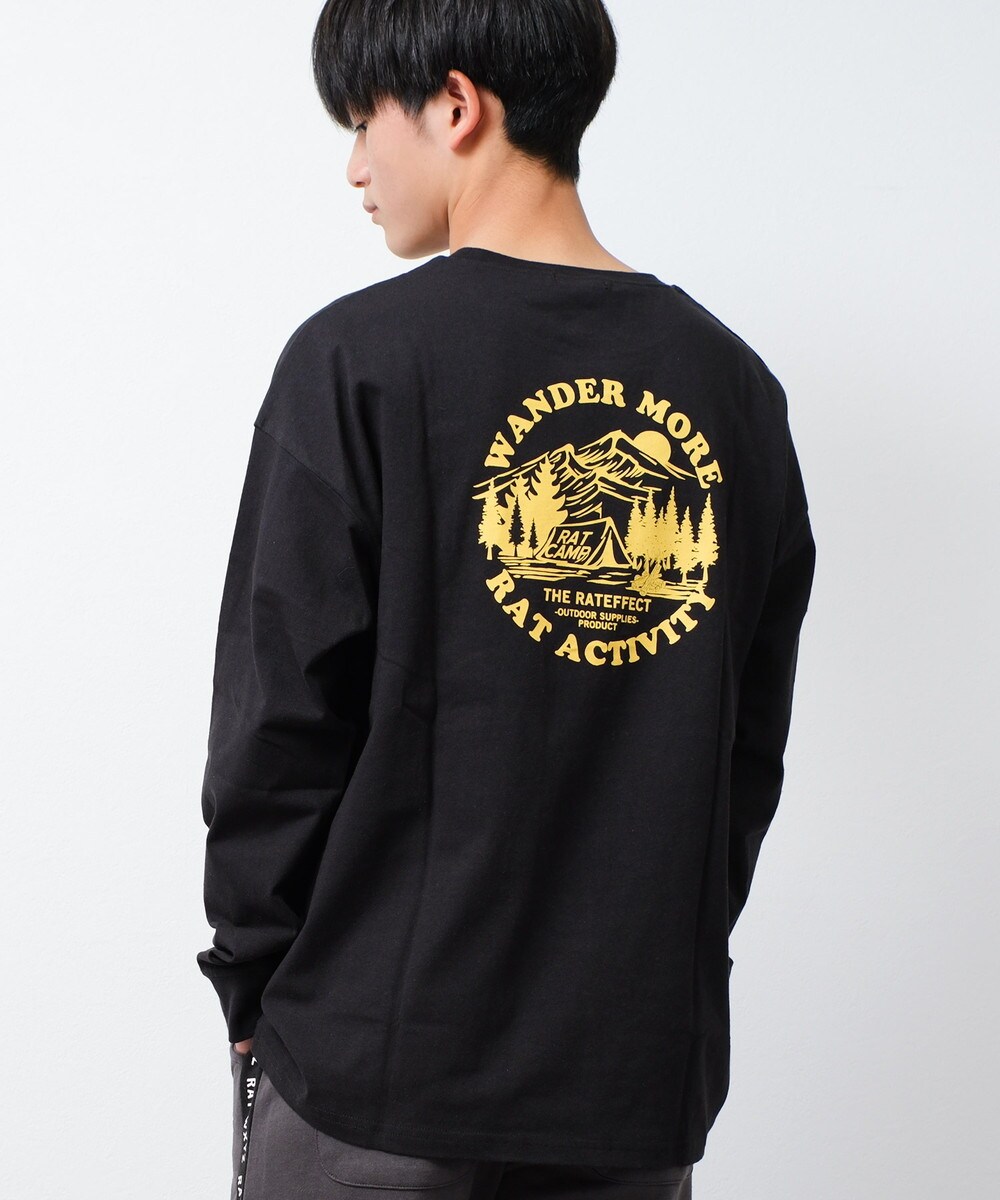 【item info】RAT ACTIVITY ロングTシャツ。人気のアウトドアデザインシリーズのロンTです。バックをあえて1色プリントにすることでシンプルで使い勝手のいい1枚に仕上げています。フロントはマウンテンロゴ刺繍デザインがアクセントになりオシャレな雰囲気に◎キャンプなどアウトドシーンでの着用にもオススメです。