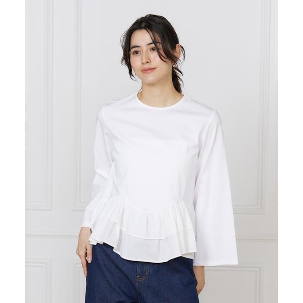■デザインフリルドッキングのプルオーバーカットソー。程よい丈感でウエスト回りをカバーし、動くたびに揺れる裾のフリルディテールが華やかさを与えてくれます。首元はクラシックな印象をあたえるコンパクトなサイズ感に設計にし、袖はフレアーラインにすることで程よい抜け感のある雰囲気に仕上げました。■素材高級(超長)綿のスーピマコットンを(32Gの)ハイゲージで編みあげたポンチ素材。高密度で編むことにより今までにないシャープさとハリ感を表現しています。また、特別な加工(ロイヤルクール加工)を施す事で、糸の毛羽をそぎ落とし生地表面の上品な光沢をプラスしました。綿100%でありながら合繊の様な程良いドレープ性を持つ素材です。また、淡色でも透けにくい素材感や高いストレッチ性で快適な着心地を叶えます。・水洗い可■サンプル撮影商品画像の商品はサンプルです。実際の商品とはサイズや色味、素材、デザイン等の仕様が若干変更になる場合がございます。■カラーについては、可能な限り実際の商品に近いカラーで撮影をおこなっておりますが、照明の関係により実際の製品とは色味が違って見える場合があります。またパソコン・スマートフォンなどの環境により、若干製品と画像のカラーが異なる場合もございます。現物と画像のカラー差異については返品理由となりませんので、予めご了承ください。■サイズ表記はあくまで目安となります。