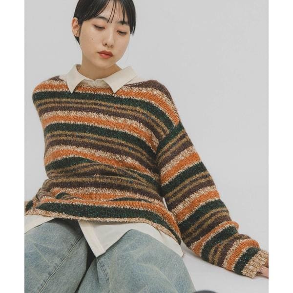3種類の糸を組み合わせたキャッチーなニットが登場。全体的にゆったりとしたサイズ感に仕上げつつ、首回りは少し広めに設定することで抜け感をプラスしました。華やかさ満載のBLUEとBROWN、取り入れやすいIVORYをご用意しております。カジュアルなデニムから、マニッシュなボトム、ショートパンツまで幅広いアイテムと合わせていただけます。
