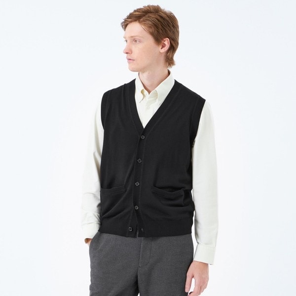 ◆【ウォッシャブル】ハイゲージクルーネックニットベスト